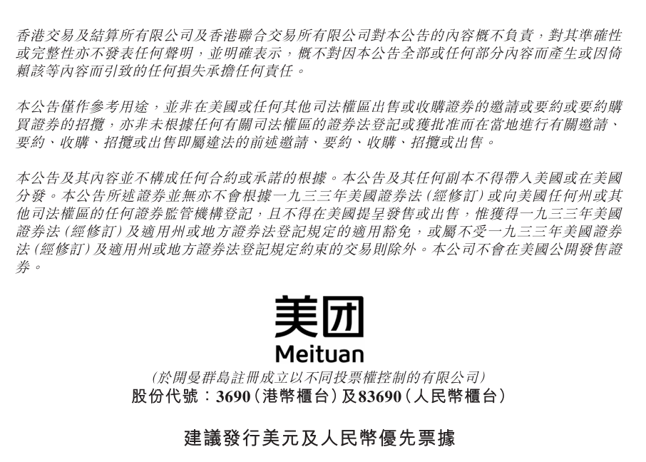 好意思团在当天的公告中暗意,权术刊行好意思元和东说念主民币计价的优先单据,并将所得用于离岸债务再融资至极他一般企业用途。